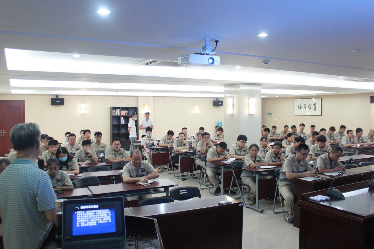 面對物欲橫流的社會,紙醉金迷的今天,都會讓人一不小心迷失,道德也就成了每個人心里的最后一道防線。本來道德應該是做任何事情最前面的標桿,現在卻成了最后的一道防線,這不能不說這是社會發展的洪流中的一大悲哀。今天梁教授的這一堂課,也深深的喚醒了最深處的良知,可能也是那些正準備跨越道德底線的那些人,給拉了一把。此時,公司組織這樣的培訓和講座,是至關重要的,也是幫員工們樹立正確的人生觀、價值觀和道德觀,無論是員工個人的發展,還是企業的發展,都是一堂意義深遠的教育課。    課堂上,梁教授的內容細致入微,言簡易懂,從古至今,都例舉了一些實例,小到個人,中到社會、企業,大到國家,梁教授的博學多識讓人嘆服,家國情懷也讓人肅然起敬,大家也是聽的津津有味,學的受益匪淺。