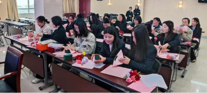 三樓培訓(xùn)教室布置得溫馨而浪漫,各色鮮花爭(zhēng)奇斗艷,芬芳撲鼻。女神們暫時(shí)放下了繁忙的工作,紛紛踴躍參與到活動(dòng)中來,現(xiàn)場(chǎng)洋溢著歡聲笑語,氣氛熱烈而融洽。公司特別邀請(qǐng)了專業(yè)的花藝師進(jìn)行現(xiàn)場(chǎng)指導(dǎo),為大家詳細(xì)介紹了鮮花的品種、特點(diǎn)以及插花的基本技巧和注意事項(xiàng)。在花藝師的耐心講解下,女神們紛紛躍躍欲試,準(zhǔn)備一展身手。在老師的悉心指導(dǎo)下,大家也迫不及待地拿起剪刀和鮮花,開始了自己的創(chuàng)作之旅。她們充分發(fā)揮著自己的想象力和創(chuàng)造力,將一朵朵鮮花巧妙地搭配組合在一起,用心地修剪、整枝、造型。不一會(huì)兒,一個(gè)個(gè)獨(dú)具匠心、絢麗多彩的插花作品便呈現(xiàn)在眼前。有的作品簡約大方,有的作品清新雅致,有的作品則熱情奔放,每一件作品都展現(xiàn)了大家對(duì)美的獨(dú)特理解和追求。