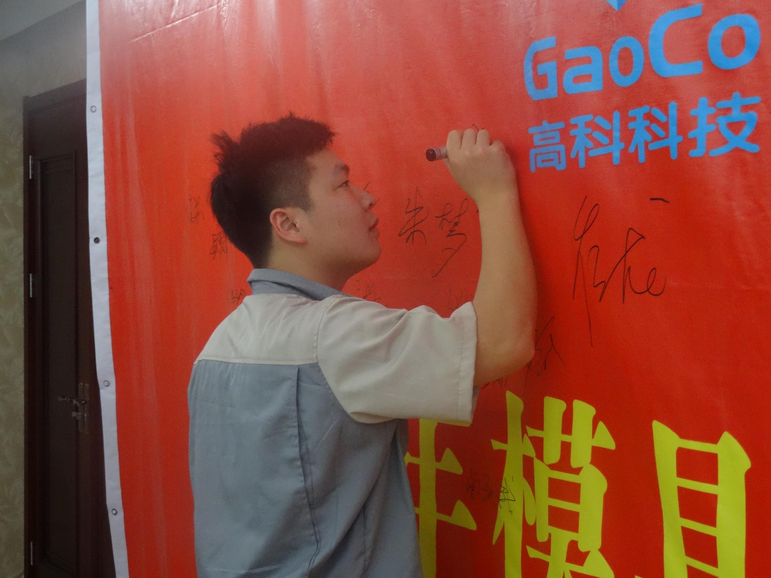 隨后模具事業(yè)部丁部長帶領(lǐng)全體人員進行安全生產(chǎn)月宣誓,并在誓師大會橫幅上簽名。