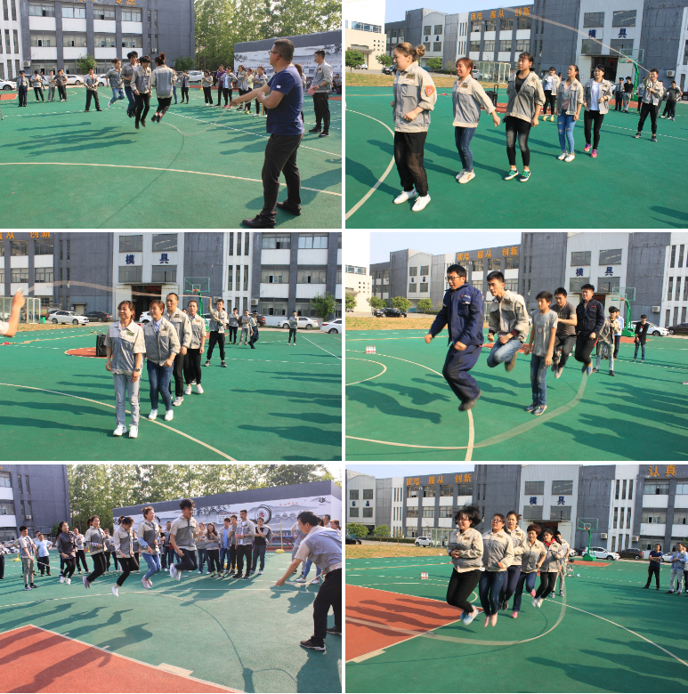本次活動的第二項比賽是跳繩——團體跳,每個事業部各派出一隊,共六支隊伍,每隊七人,男女不限,兩人甩繩,五人跳,這樣既展現了團隊的默契程度,又體現了團隊的協作精神,這也是合肥高科的主旨文化。跳繩的規則是一分鐘時間內,以團隊成功跳起的個數計算,跳繩過程中可以停頓,以一分鐘結束時的次數為最后成績。