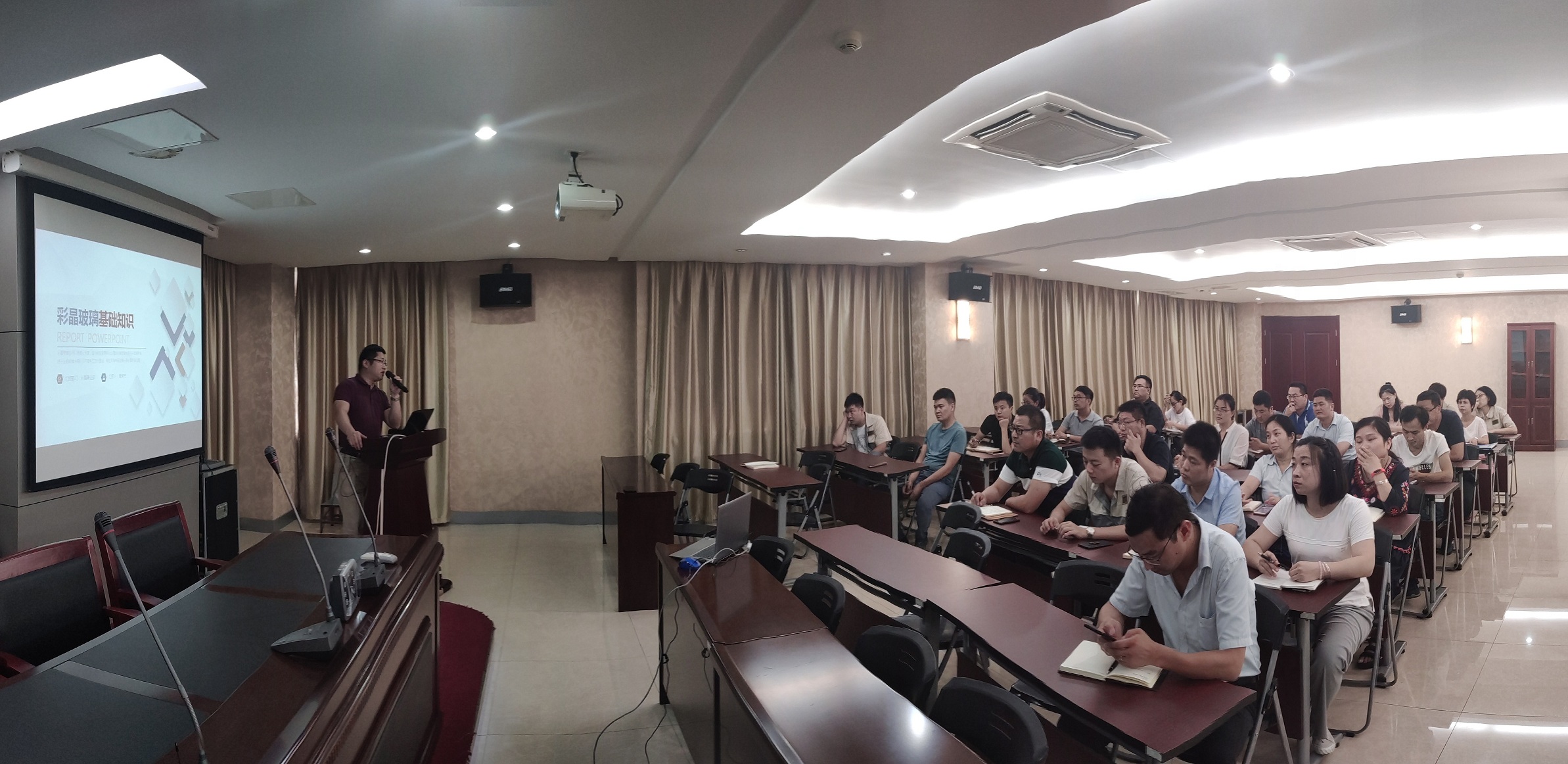 7月17日下午,合肥高科進行了業務知識培訓第七講:彩晶玻璃基礎知識培訓,主講人是彩晶事業部魏部長。魏部長圍繞著彩晶玻璃的應用、生產過程、主要客戶以及競爭對手、彩晶的產能及利潤構成,分別展開了詳解。